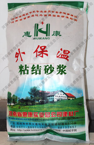 “惠康”外墻外保溫砂漿膠黏劑是一種灰色粉料,選用進(jìn)口聚合物可再分散乳膠粉作為膠接基料,配以優(yōu)質(zhì)精選骨料組成的粉狀產(chǎn)品,按一定的比例加水混合即可使用。具有粘結(jié)強(qiáng)度高,使用方便等優(yōu)點(diǎn),屬綠色環(huán)保產(chǎn)品。
