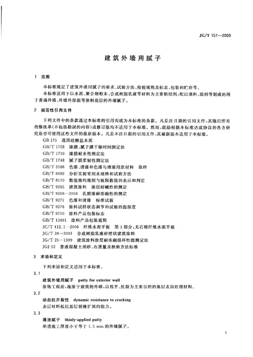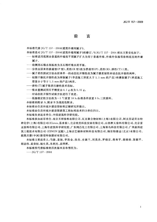 《建筑外墻用膩子》行業(yè)標準
